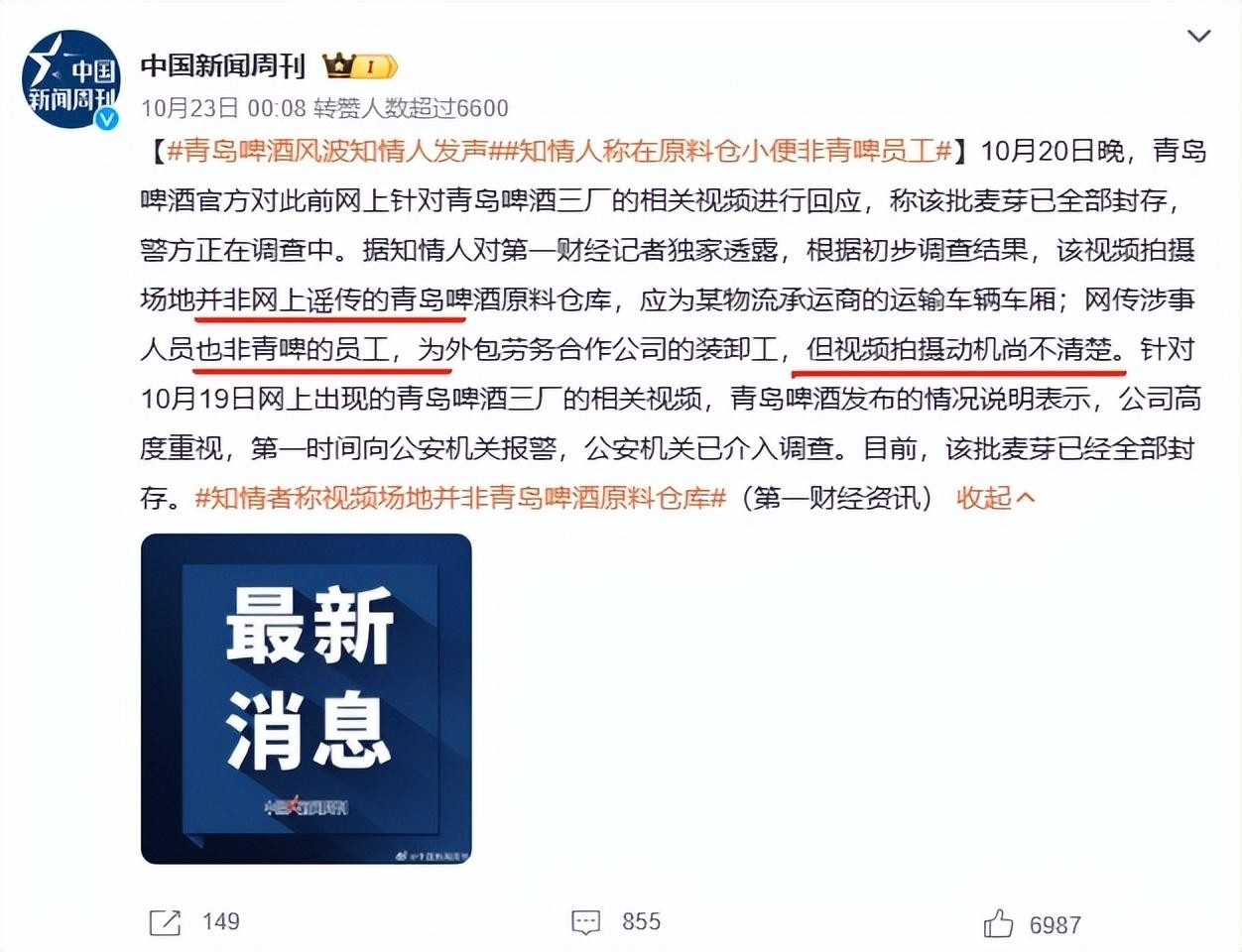青岛啤酒厂事件后续:这一泡尿市值200亿!处理结果令人意外