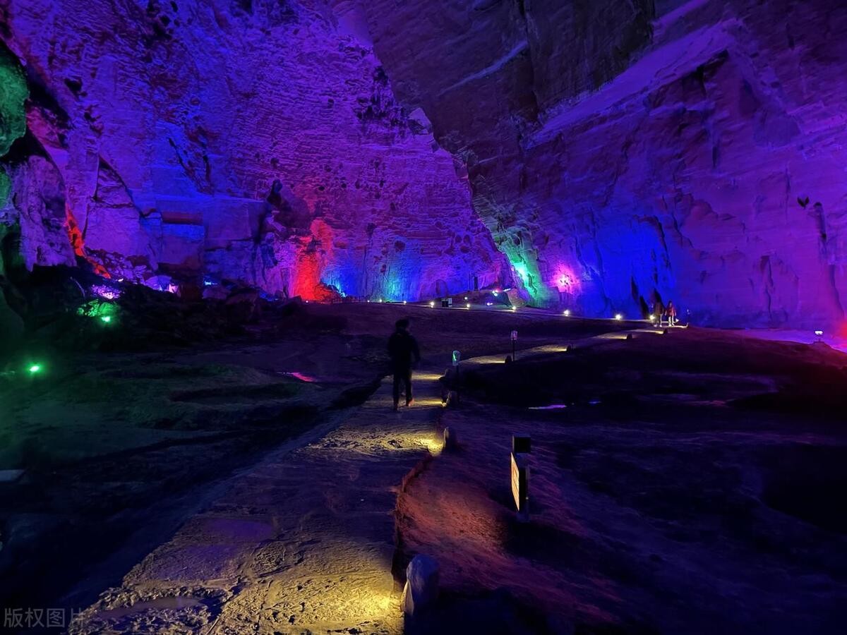 游客中心:首先到达游客中心,购买门票并领取景区地图。洞口:沿着步道前行,可以欣赏到腾龙洞的壮观洞口,感受到大自然的鬼斧神工。洞内游览:进入洞内,游客可以欣赏到各种形态奇特的钟乳石、石笋、石花等。同时,在洞内还可以听到地下水流的声音,感受到溶洞的神秘和宁静。激光秀:在洞内游览结束后,游客可以观看激光秀表演。激光秀以腾龙洞内的钟乳石、石笋等为背景,通过激光的投射和变化,营造出梦幻般的视觉效果。休息区:在游玩过程中,游客可以在休息区休息、用餐、购买纪念品等。