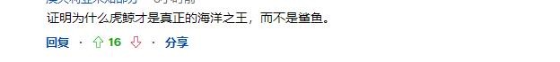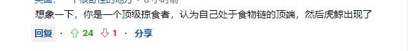 网友最先质疑的是大白鲨顶级捕食者的地位:
