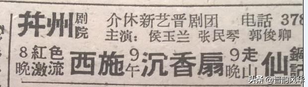 张鸣琴这个名字,在当今晋剧界可谓威名远播。上世纪孝义新艺剧团,由于介休、孝义、灵石三县合一,短暂为隶属于介休新艺晋剧团,戏报上也写的是张民琴、侯玉兰、王青兰、杨录光,这是剧团主要骨干,在各地演出深受欢迎,风靡晋中、吕梁。从孝义唱到太原,又唱过了四川成都。在太原演出期间受到丁果仙的赏识,收在了门下,给予了指导。四川成都有许多山西南下干部,对于山西梆子非常有感情,这时的张鸣琴感受到外地山西人的热情,为他们演出一出出精彩的剧团,给他们留下深刻的印象。