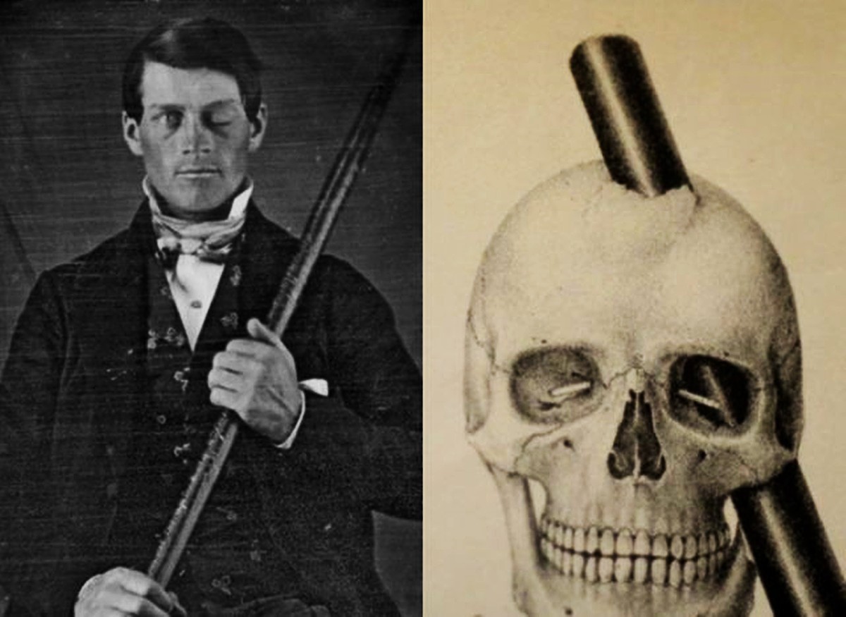 4.一个不可思议的奇迹,1848年,一名铁路工人的头部被一根铁棒击穿,但他神奇地活了下来。