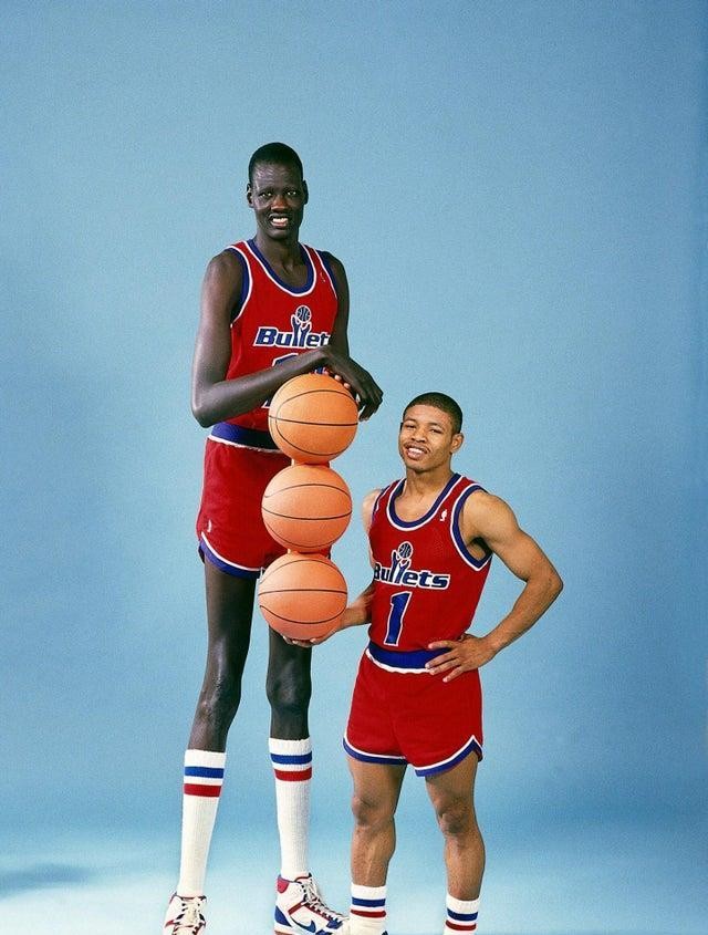 30.NBA史上最高球员(2.3米)和最矮球员(1.6米)的合影。