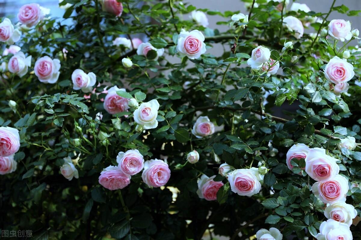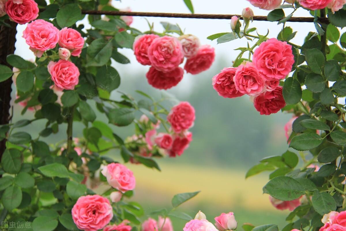 胭脂扣枝条比较软,很好造型,是大拱门、花墙的不二之选。它还比较耐阴、耐贫瘠,有地方的花友重点考虑一下。