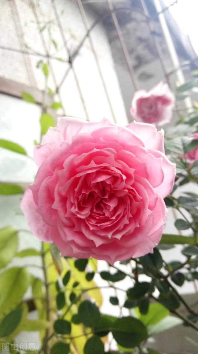 藤本月季粉色龙沙宝石简称粉龙,受欢迎程度非常高。它的生长速度也特别快,是妥妥的大块头。另外,它的叶子特别油亮、宽大,抗病性很好。