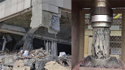 队员们想象一下,推着石磨碾过去,啥都成了渣。就这样,楼顶的稳定性破坏了个彻底,楼顶除了不同程度的裂缝,每次启动冷气机,带来的机器的震动,就给脆弱的楼板“割口子”,也加剧了立柱的负担,最终坍塌启动点就出在了“不能承受之重”的5E号立柱。