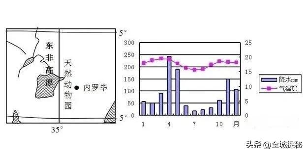 1.先看东非高原。整体而言,东非高原的气候以热带草原为主,但在不同区域却有分布着很多不同气候类型;