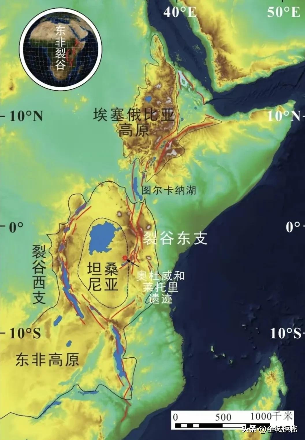两座高原与东非大裂谷位置