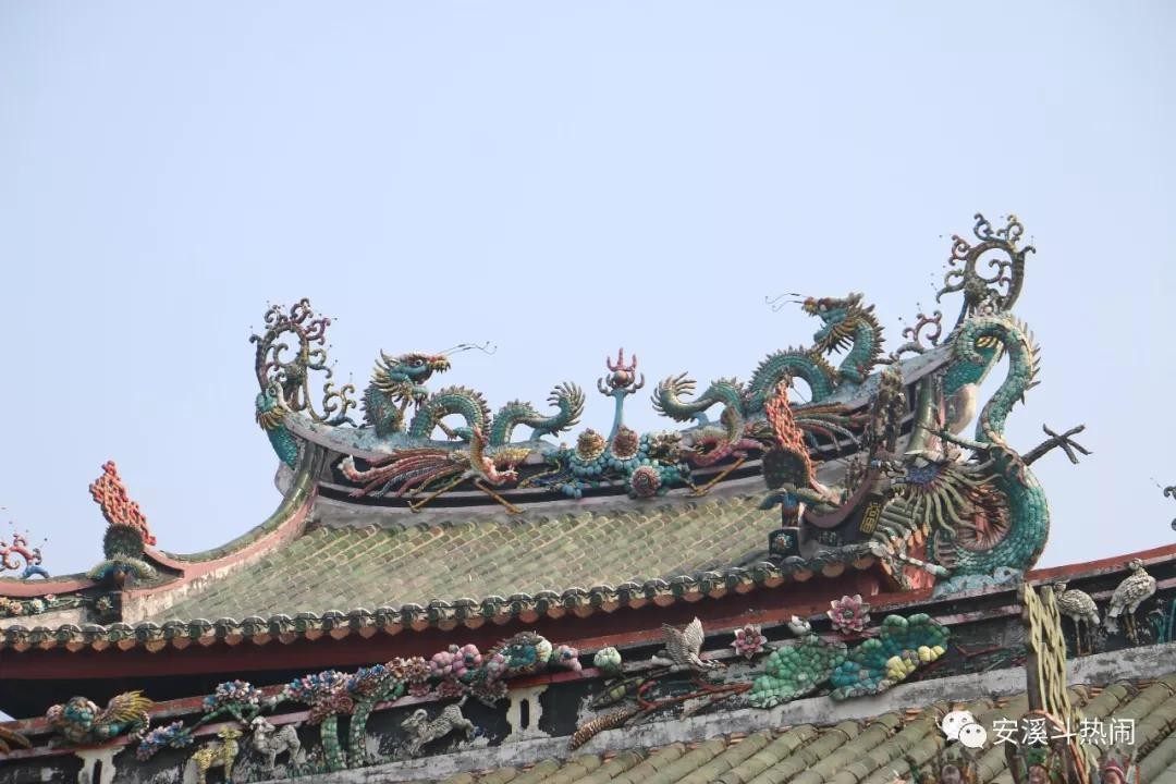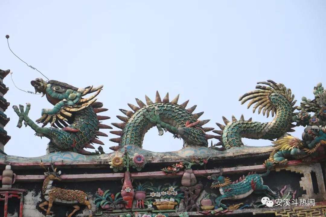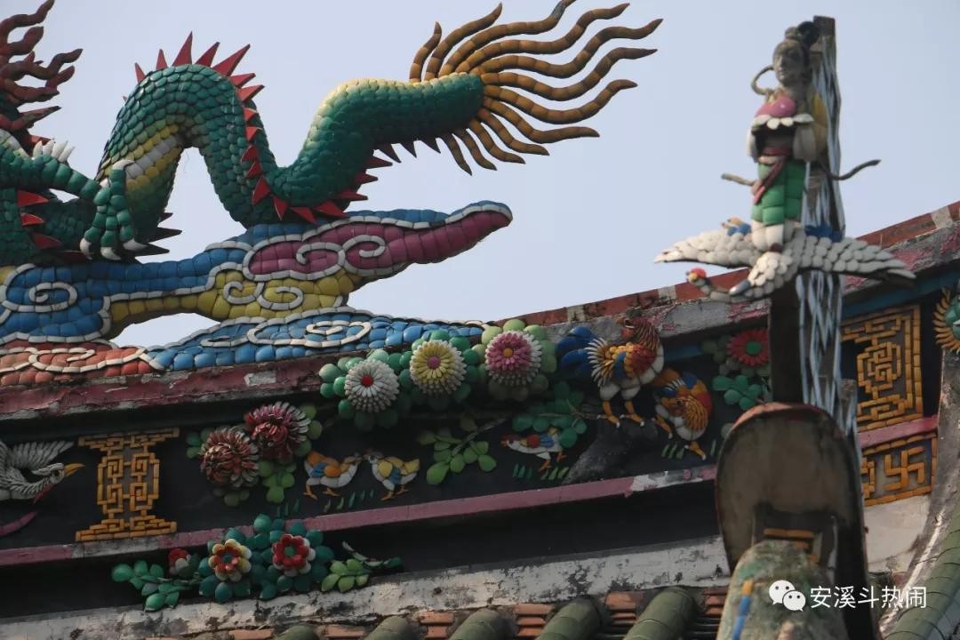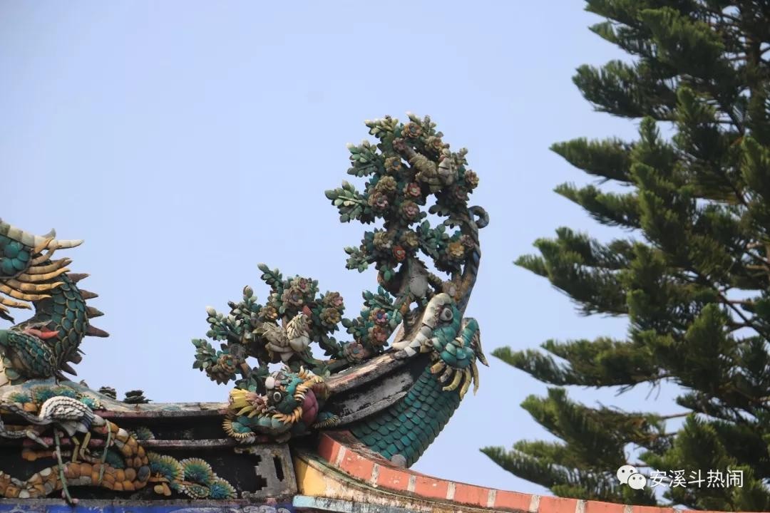闽南寺庙屋顶多为歇山式,屋脊用闽南独特的剪黏工艺,将碎瓷片等拼塑成色泽亮丽的龙凤、人物等艳丽的彩瓷。形象生动、釉面透亮、立体感强、栩栩如生,为寺庙建筑增添了不少美感,而三平寺屋脊的这些艺术品令小伙伴们赞叹不已。