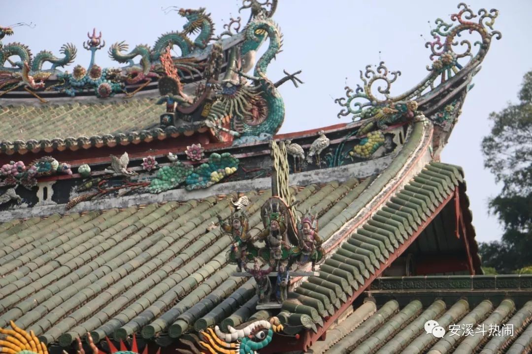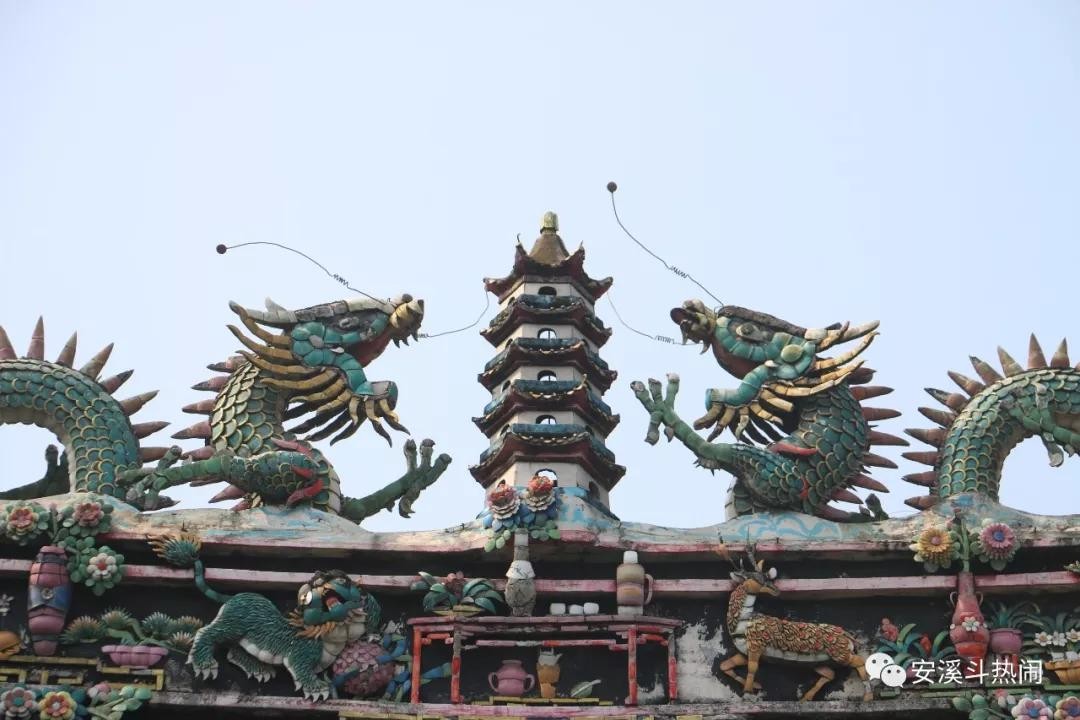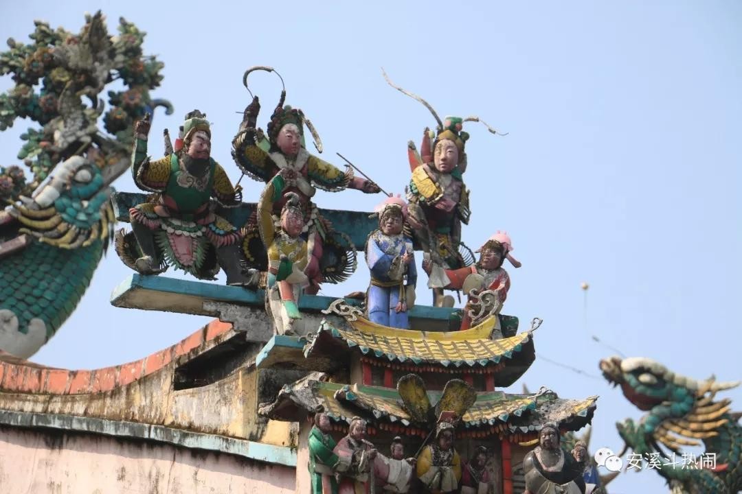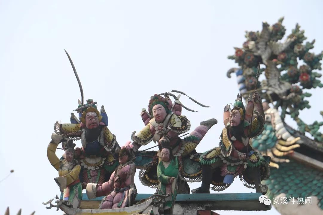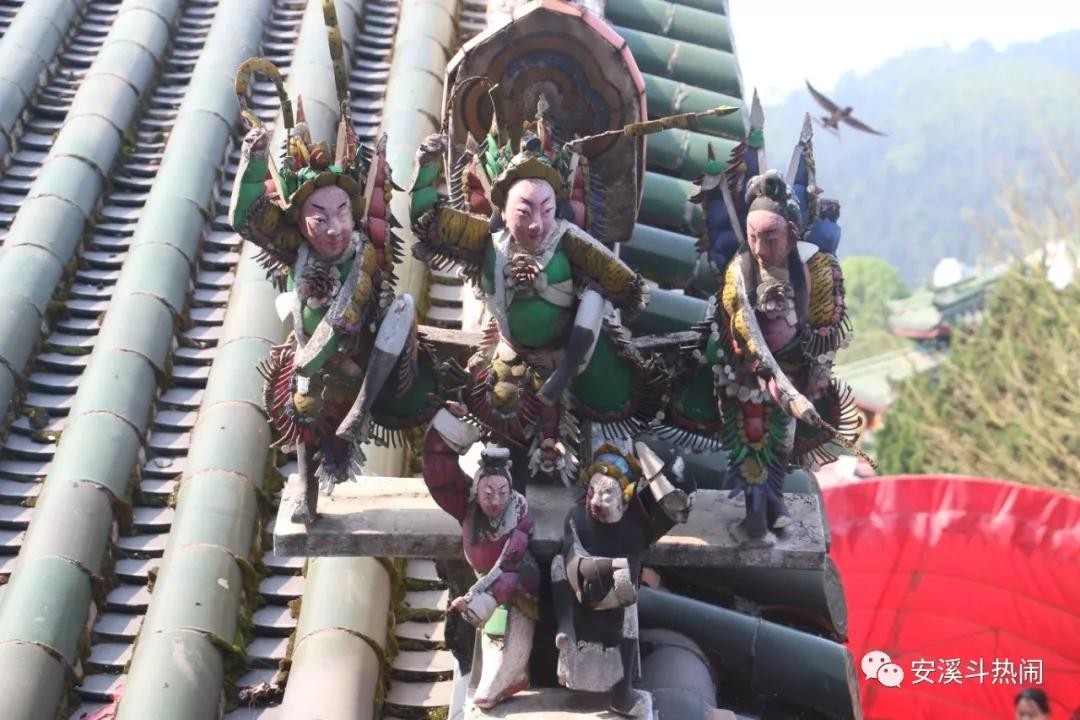 闽南寺庙屋顶多为歇山式,屋脊用闽南独特的剪黏工艺,将碎瓷片等拼塑成色泽亮丽的龙凤、人物等艳丽的彩瓷。形象生动、釉面透亮、立体感强、栩栩如生,为寺庙建筑增添了不少美感,而三平寺屋脊的这些艺术品令小伙伴们赞叹不已。