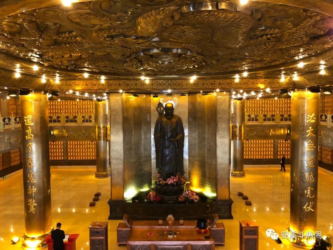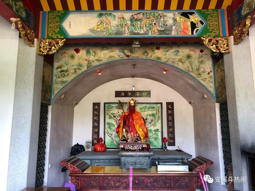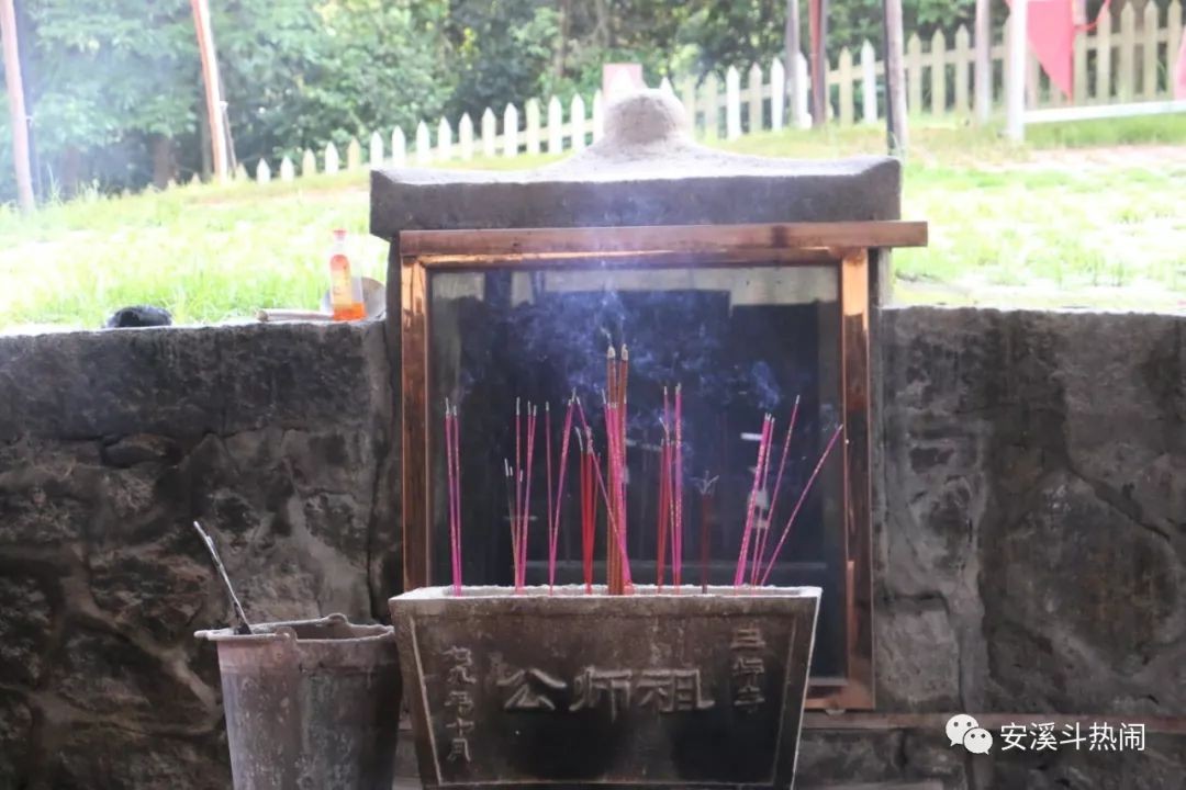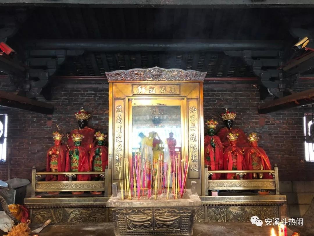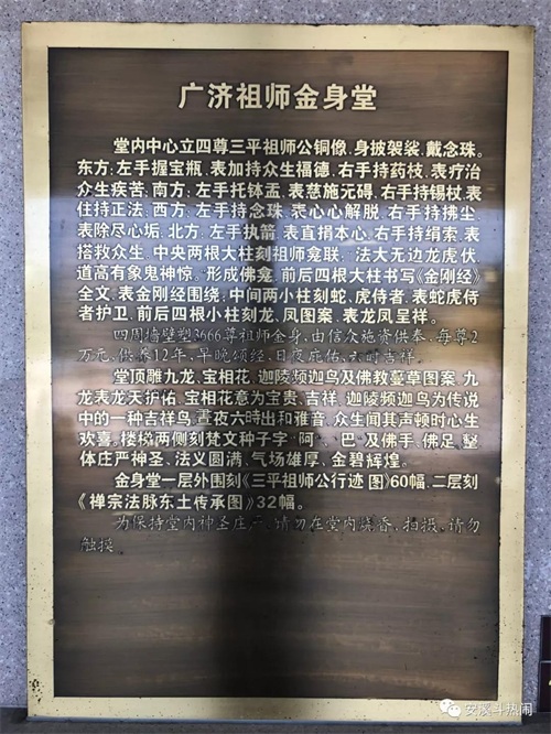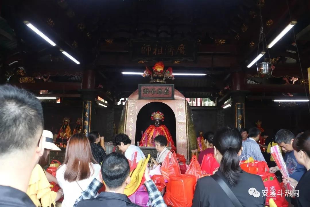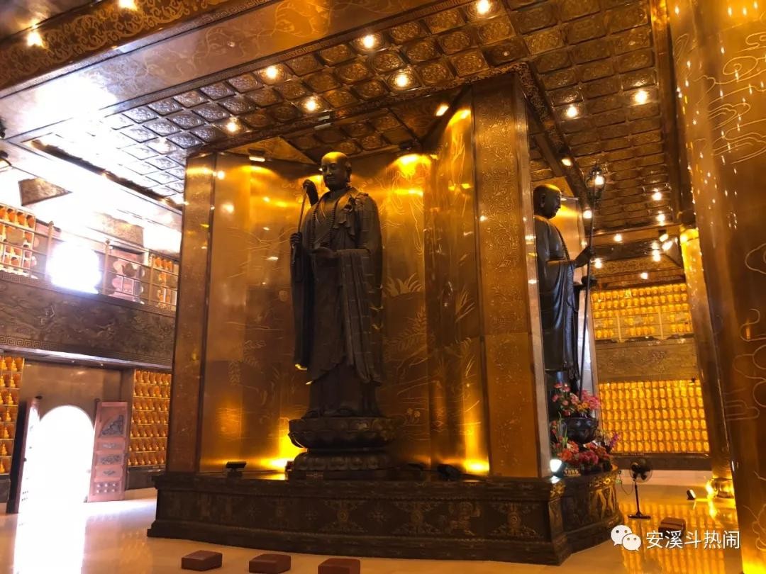 这里香火鼎盛,常常被挤得里三层外三层,人头攒动,水泄不进。这塔殿的正中,有一个圆伞形的顶盖,构造极为雅观别致,碑文称之为“宝盖”,正好罩在广济大师的头上。据传,义中大师九十二岁时,是坐着告辞人世间的,是三平寺最为热闹的地方。大边塑一尊义中大师像,小边则为潘颜尚书。殿壁两侧镶有七方碑碣,都是明、清重修殿宇的碑记。