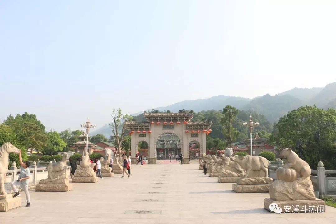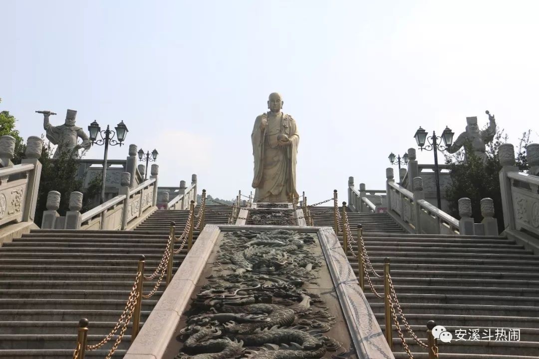 三平祖师文化园介绍:三平祖师文化园,位于三平寺东侧的小山坡,南起东湖,北至紫竹谷,园区总用地面积13.34公顷(约200亩),占地面积17000平方米,总建筑面积9166平方米。文化园的总体布局是以三平祖师铜雕像为核心,由下往上主要有:仰圣广场、六福台、祈福广场、六度台和尚德广场。
