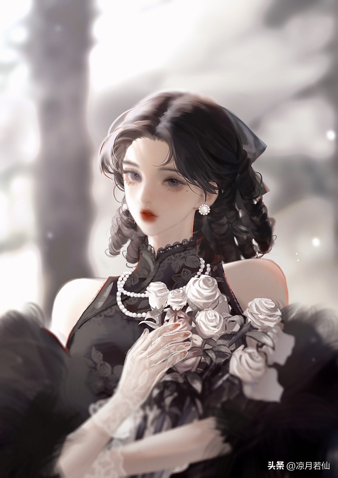 下了台阶,季九爷驻足的垂花门内,身长玉立,一袭银白直缀,一手捻佛珠,一手摸狗头,戴着墨镜的眸子看不清什么神情,似是端端正正对着院子里的人。