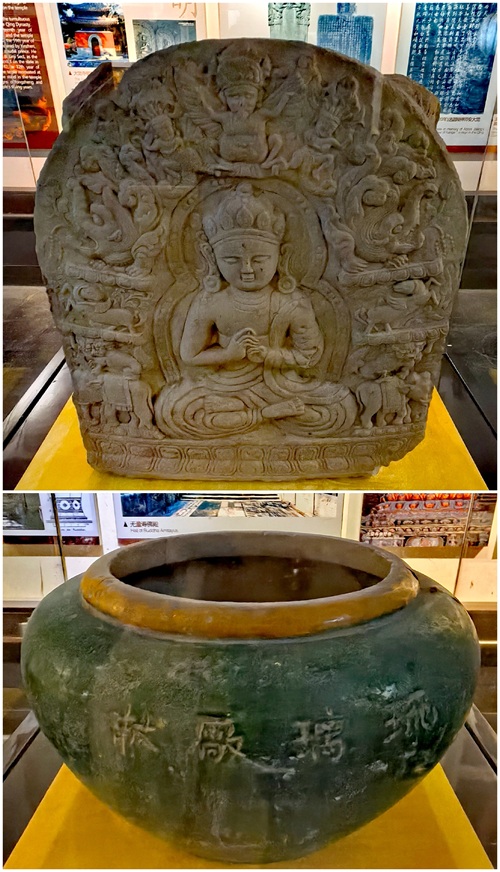 大悲坛现为《大觉寺历史文化展》展室,通过图片、文字以及部分实物,介绍了大觉寺自清水院创建至今近千年的历史轨迹。上图为部分寺藏文物。