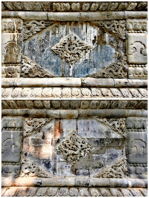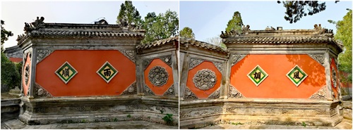 山门两侧八字影壁墙上书“风调”、“雨顺”,祈求国泰民安。