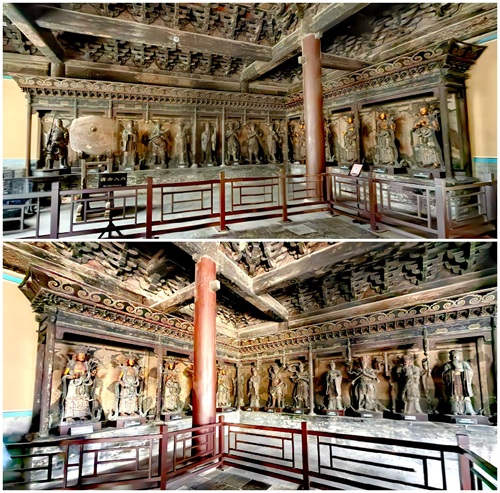 大殿两侧墙供奉的泥制二十诸天塑像。