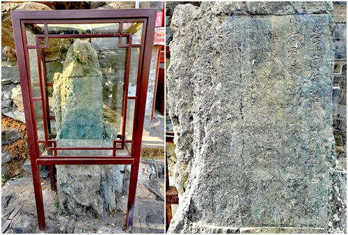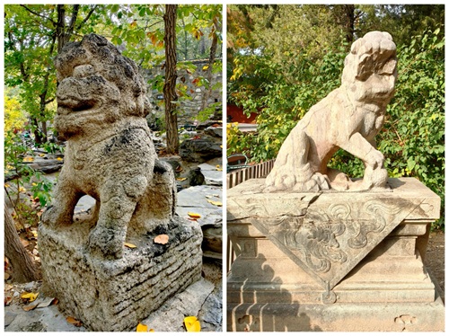 领要亭旁的辽代石刻狮子,右侧是功德池旁的辽代石刻狮子,可惜头部都有残缺。