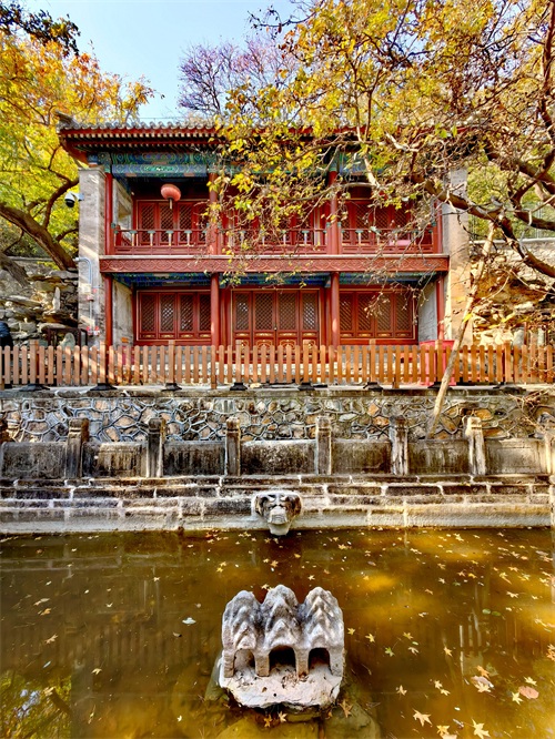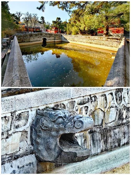 功德池亦称放生池,位于山门殿后,为长方形水池,池上正中建有石桥将水池一分为二,池的南北两端正中,各有一个石雕龙首。