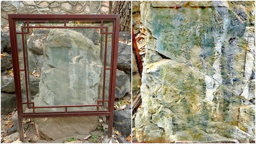 龙王堂南侧立有乾隆皇帝御笔咏龙潭石刻。咏龙潭作,清乾隆三十一年(1766) 常闻佛说法 必有天龙护 净域有灵潭 应妥那伽住