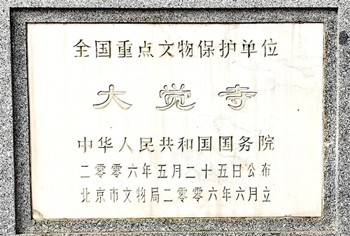 大殿前南侧立有御制重修大觉寺碑,此碑刻于明代成化十四年(1478),高1.95米,宽0.71米,螭首龟趺,碑文记载宪宗之母周太后出资修缮大觉寺历史。