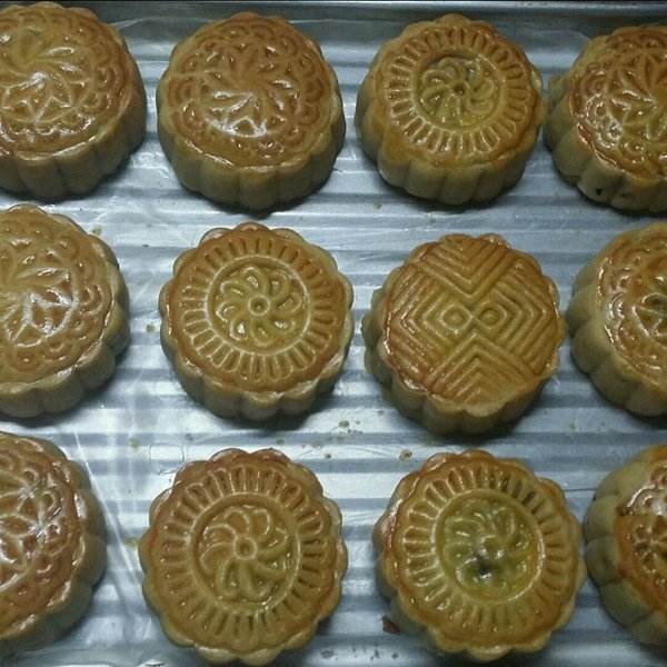 8.月饼全部做好后,整齐地摆放好,烤箱预热。上下火190度烤30分钟左右即可出炉。