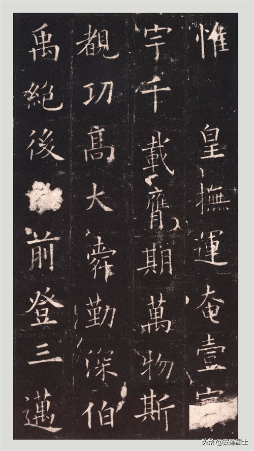 唯皇撫運,奄壹寰宇,千載膺期,萬物斯睹,功高大舜,勤深伯禹,絕後承前,登三邁五。