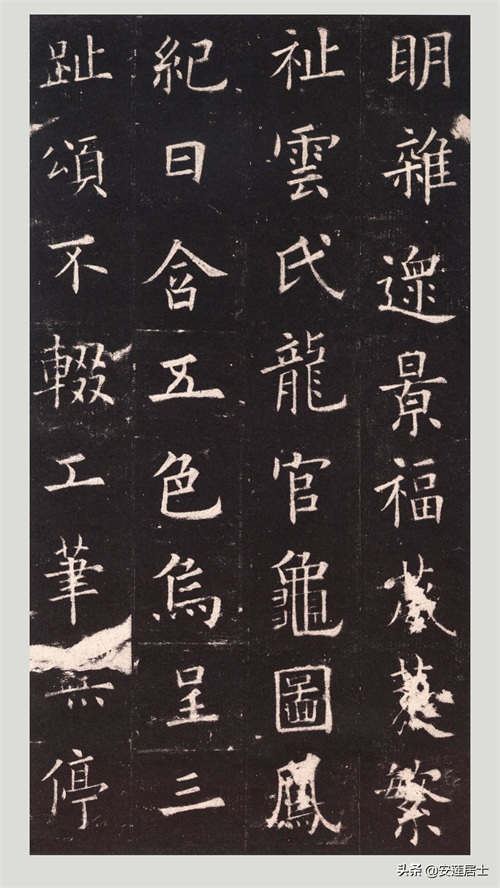 雜遝景福,葳蕤繁祉,雲氏龍官,龜圖鳳紀,日含五色,烏呈三趾,頌不輟工,筆無停史。