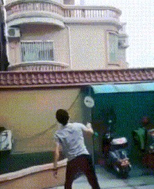 艺高人胆大,隔着墙打羽毛球,也真亏这哥们能想得出来