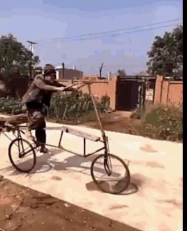 年轻人:大爷你没事干骑这么高的一辆自行车干嘛大爷:年轻人走路咋不看前面啊