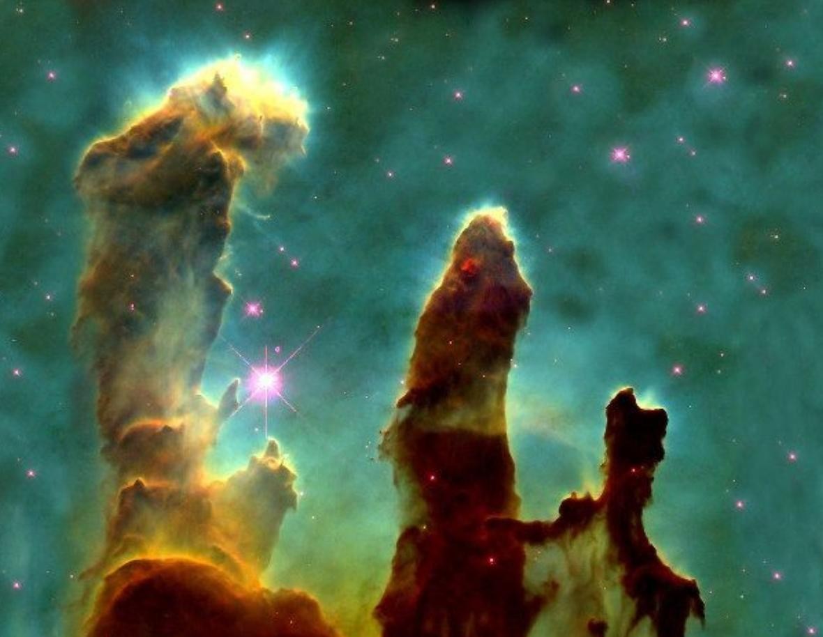 在这个宇宙中,很少有东西能让你感到自己比这幅著名的“创造之柱”图像更渺小。这是一种被恰当地命名为尘埃和气体的云,它负责产生数百万颗新恒星,距离地球6500光年。