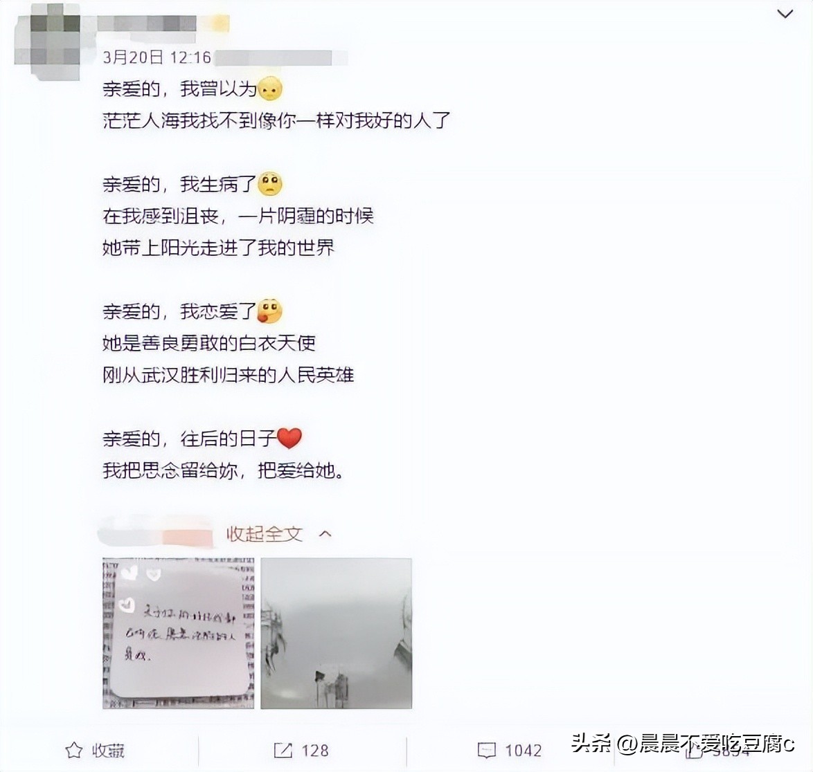 他发的这条推文前两句是在怀念已经失去的老婆,后来画风一转直接官宣了自己恋爱的消息,而且还是一名从医人员,后来也有记者找到了吴载斌进行采访,而这段采访也回应了网友们所有的疑惑。
