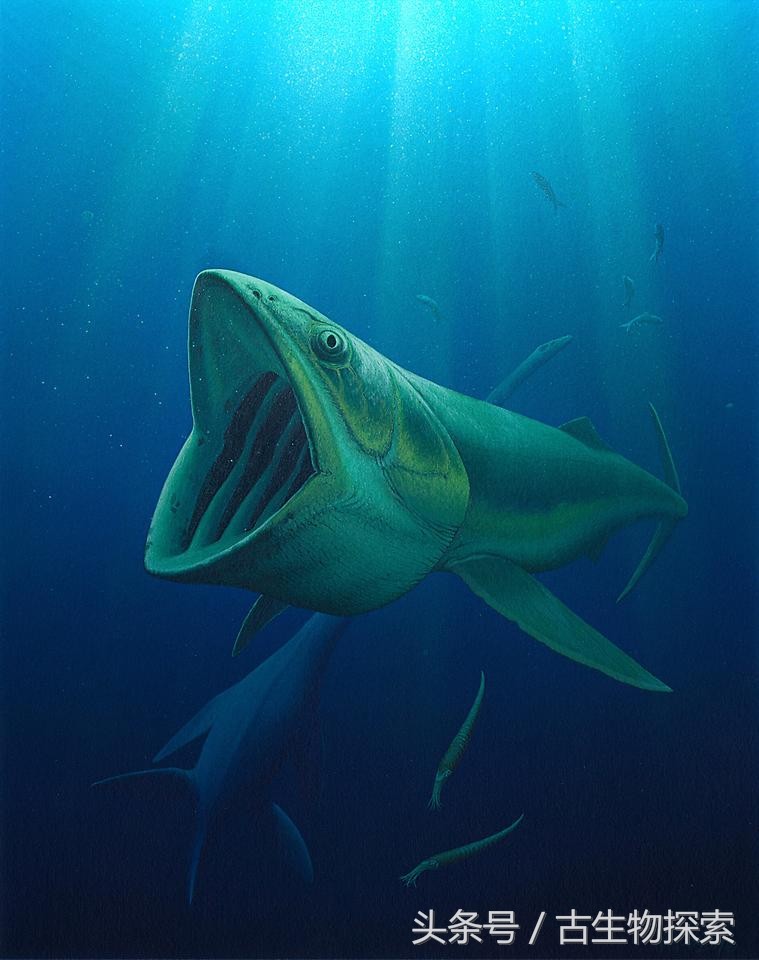 图注:在海中进行滤食的姥鲨,利兹鱼与其取食行为相似,图片来自网络