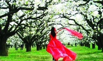 梨花白,白得让人看不出它的情绪。阳光下,千顷梨花晶莹似美玉;月光里,万顷白雪蒙眬如河汉。倘若夜来雨疏风轻,梨枝缓摆,颤巍巍粘露欲湿,自在花落轻似梦,飘飘洒洒,款款飞如蝴蝶,那满径香雪,也是风情万种。