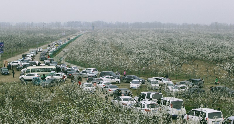 毫不夸张地说,走在砀山,随处可见洁白的梨花,宛如天上的云彩一般,掉落在一片片乌黑发亮的树枝上。在高空俯瞰,只见砀山全境层层叠叠,犹如连绵不断的梨花海,那种震撼的美丽,让人无法想象。产生一种“千树梨花千树雪,一溪杨柳一溪烟”的感觉,