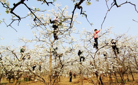 梨花授粉。这个对每个生活在砀山的人来说,都不陌生。听起来,梨花授粉好像挺好玩浪漫,其实,确是个最累人的活儿。