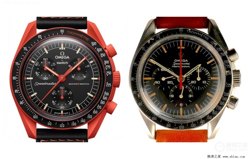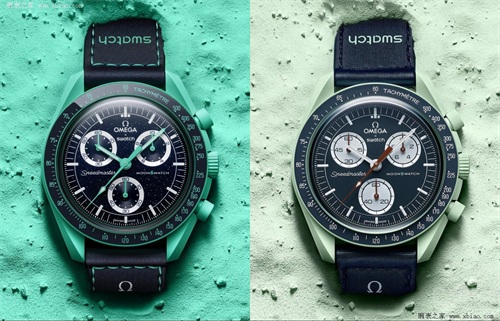 让我们把时间退回2022年3月17日,两大品牌同时在社交平台为合作预热。斯沃琪先是放出了“it's time to change your OMEGA”的短视频,作为回应欧米茄也打出了“it's time to change your SWATCH”的口号,坐实了合作事宜。一周后的3月24日,悬念揭晓:联名腕表BIOCERAMIC MOONSWATCH采用欧米茄超霸月球表的外观造型,并以斯沃琪“植物陶瓷”材质打造,内置ETA石英计时机芯。
