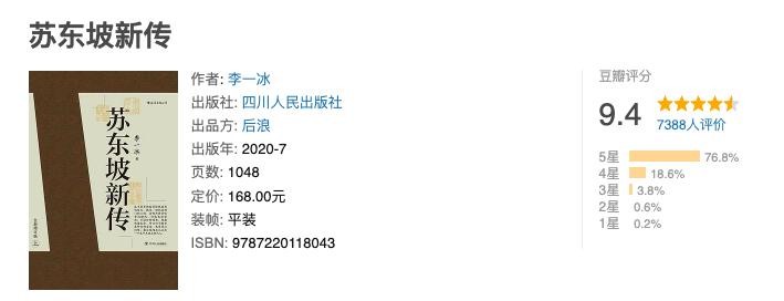 豆瓣书评:"读完决定申请调去黄州工作,毕竟那里有吃不完的东坡肘子和等我的千年粉丝。"