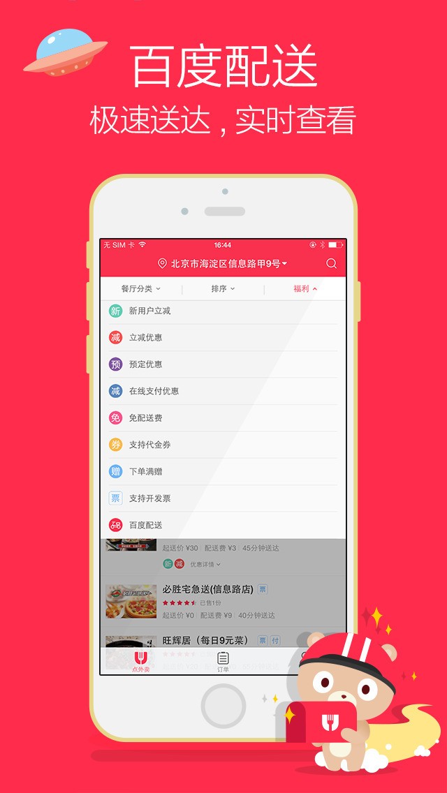 提供各类品牌外卖,美食商家订餐服务。套餐优惠,支付满减,下单抢红包优惠更多,还送餐后饮料等等。
