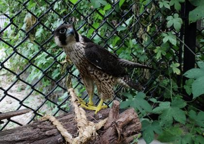 经焦作市野生动植物保护救护站工作人员十几天精心喂养,这只燕隼逐渐恢复了体力。今天上午,记者在焦作市野生动植物保护救护站看到,为让它避雨,工作人员还专门为它搭建了一个简易棚,燕隼在笼子里跳上跳下,十分活跃。