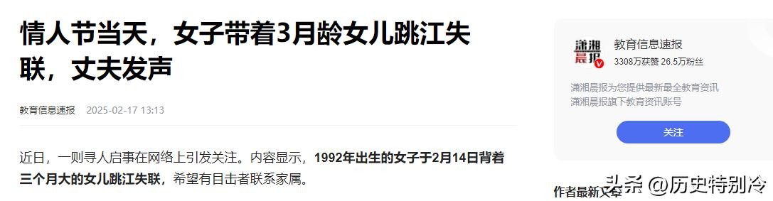 教育信息速报:2025-02-17,《情人节当天,女子带着3月龄女儿跳江失联,丈夫发声》