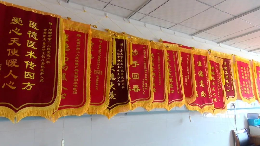 走进黄静的办公室,墙上挂满了患者送来的锦旗。她正在询问病人的身体情况,同事都亲切地叫她一声“黄姨”。见到记者时,接待病人的黄静反而有些腼腆,笑着说,“要采访吗?我干活是会干,说话是不会说。”