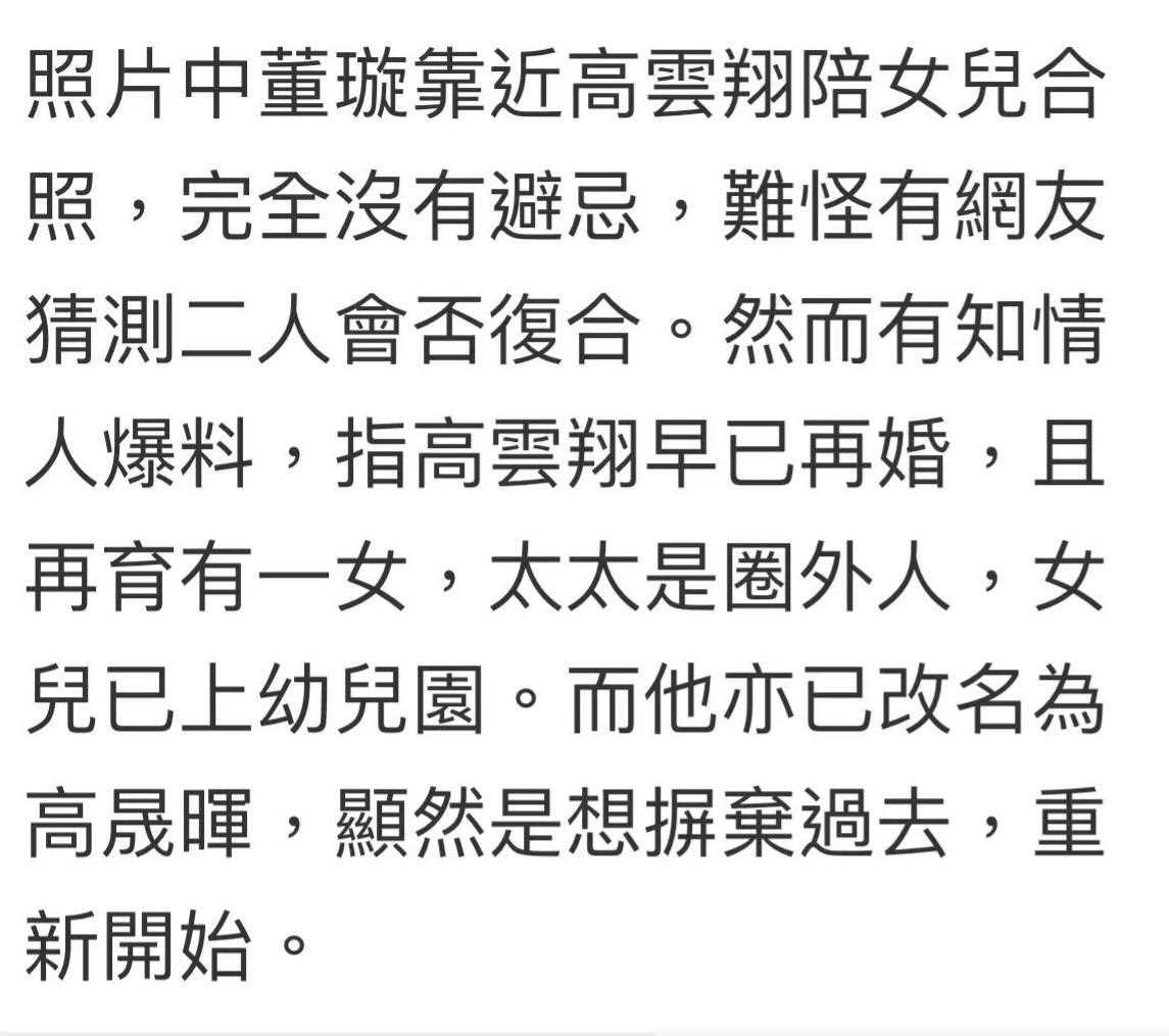 离婚后的董璇,虽然面对着重重困难,但她依然坚强地生活着。她带着女儿,寻找着新的幸福。而高云翔,也在经历了漫长的低谷之后,逐渐走出了阴影。他改名高晟晖,试图摒弃过去,重新开始。而近日,更有港媒爆料称,他已经秘密再婚,迎娶了一位圈外女子,并育有一女。虽然这一消息令人意外,但也许这正是他走向新生活的开始。