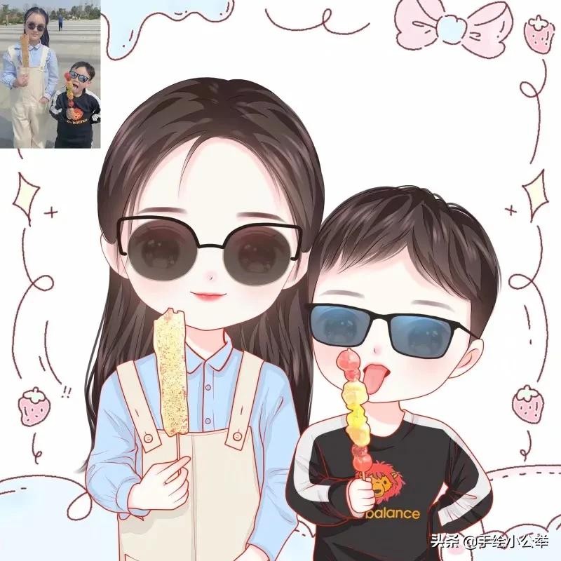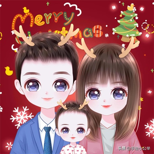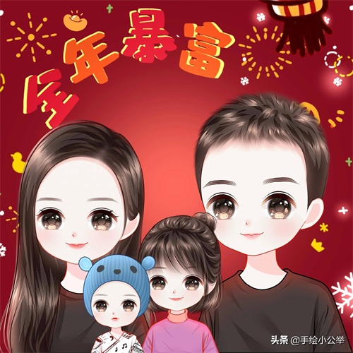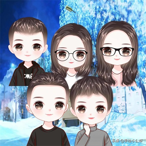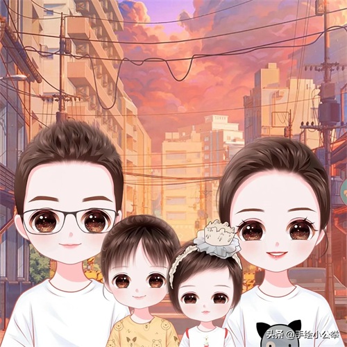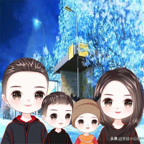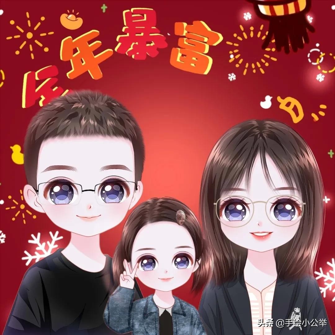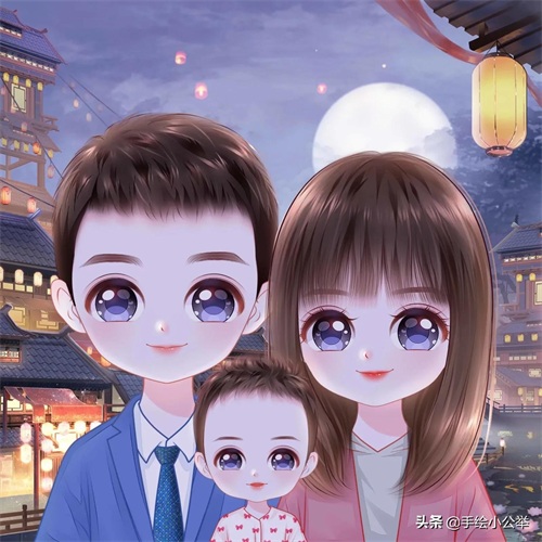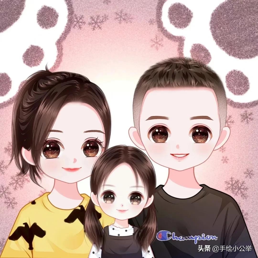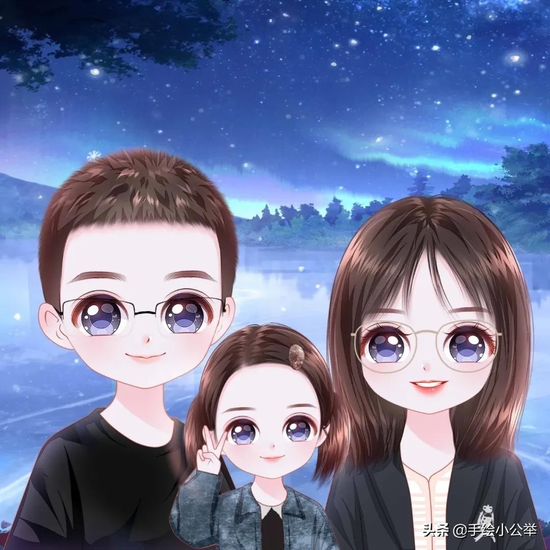 你要的微信头像已做好,一家三口,四口全家福卡通漫画头像