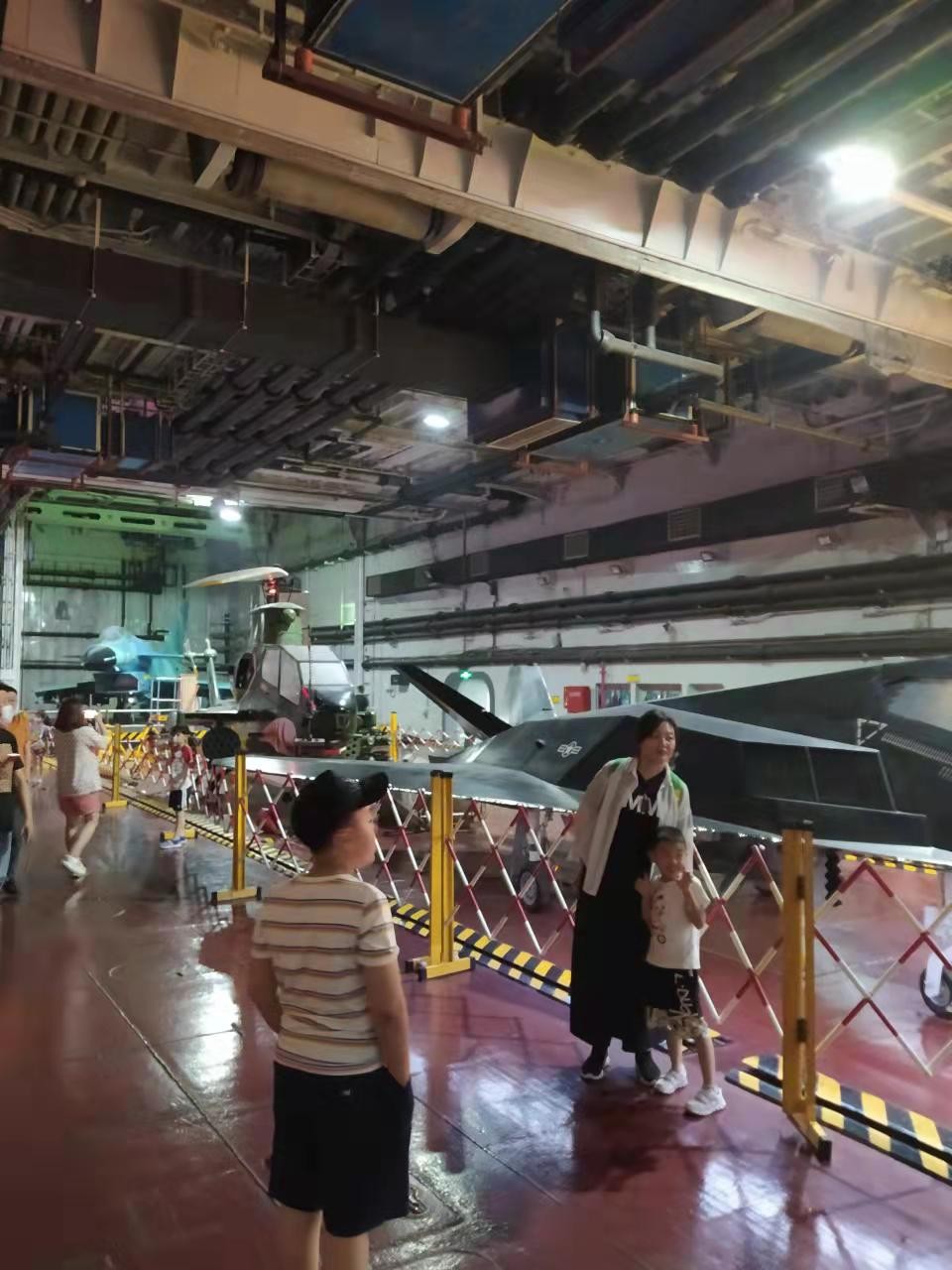 快要登舰前有个4D影院,可也感受下航母真时作战时的场景,当时考虑半天真的航母就在眼前,还需要另花门票看电影吗,后来犹豫半天还是去看了,出来后被影院真时模拟场景震撼到了,孩子妈妈直夸真的不错。玩了大概1个多小时,总算准备登舰了,关于登上航空母舰的感受就不多说了,只能现场真实感受了。我的第一印象大,震撼,威武,霸气。