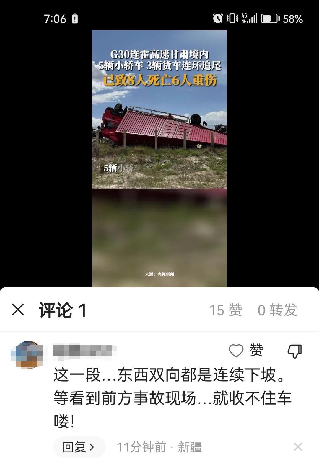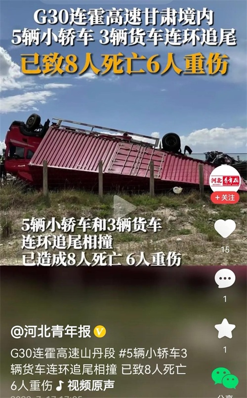 7月17日,连霍高速G30位于甘肃省张掖市境内,往新疆方向发生重大车祸。