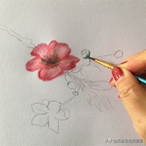 4、用浅绿色和红色分别涂抹花托和花苞。