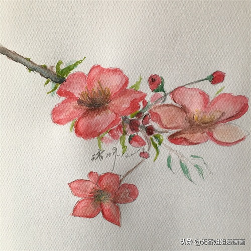 手绘简约风格的《桃花》,大人和孩子一看就会,内附详细教程