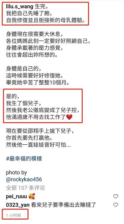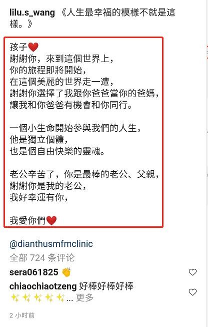 第二条动态才谈到自己,表示刚刚当妈的她会好好休息,好好照顾自己。