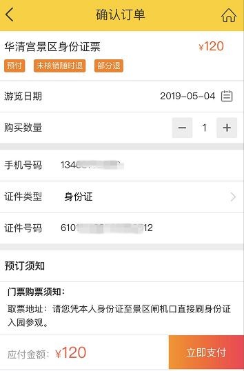 包含项目:华清宫景区门票1张。(微信购买实行实名制,如因个人原因录入预定身份证号码错误导致的无法入园,后果自负,请下单时谨慎检查录入真实身份证号码。)