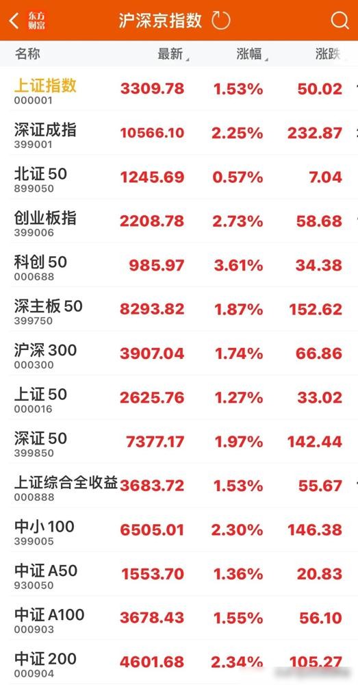三大指数同步大幅拉升,并且整体个股呈现普涨之态,虽然还有部分个股下跌,但是跌幅已经明显收窄。
