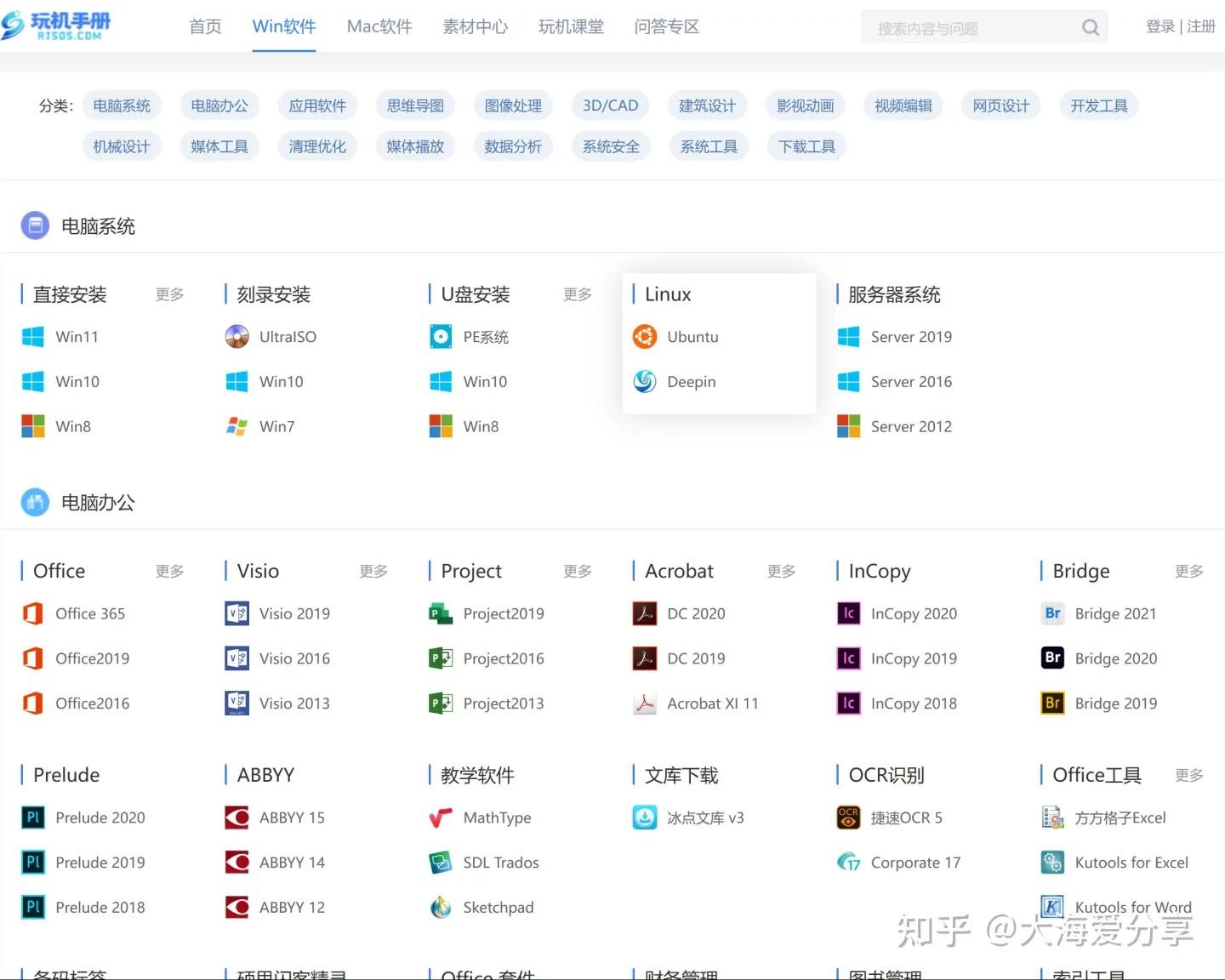 是一个公众号,收藏了十几个类型的软件,囊括系统软件,办公软件,设计软件,开发软件等,都能满足基本软件的需求,比较有特色的是,每个软件都有安装步骤说明,是小白的好帮手。下载链接为某度网盘。